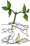 Черенки, состоящие из почки с листом, можно нарезать из любых побегов - зеленых, полуодревесневших и одревесневших. Верхний срез делают как можно ближе к почке, по возможности, не оставляя пенька. Нижний - в 2,5-4 см от верхнего. Каждый черенок должен состоять из одного листа (другой лист удаляют), находящейся в его пазухе почки и очень короткого отрезка стебля.